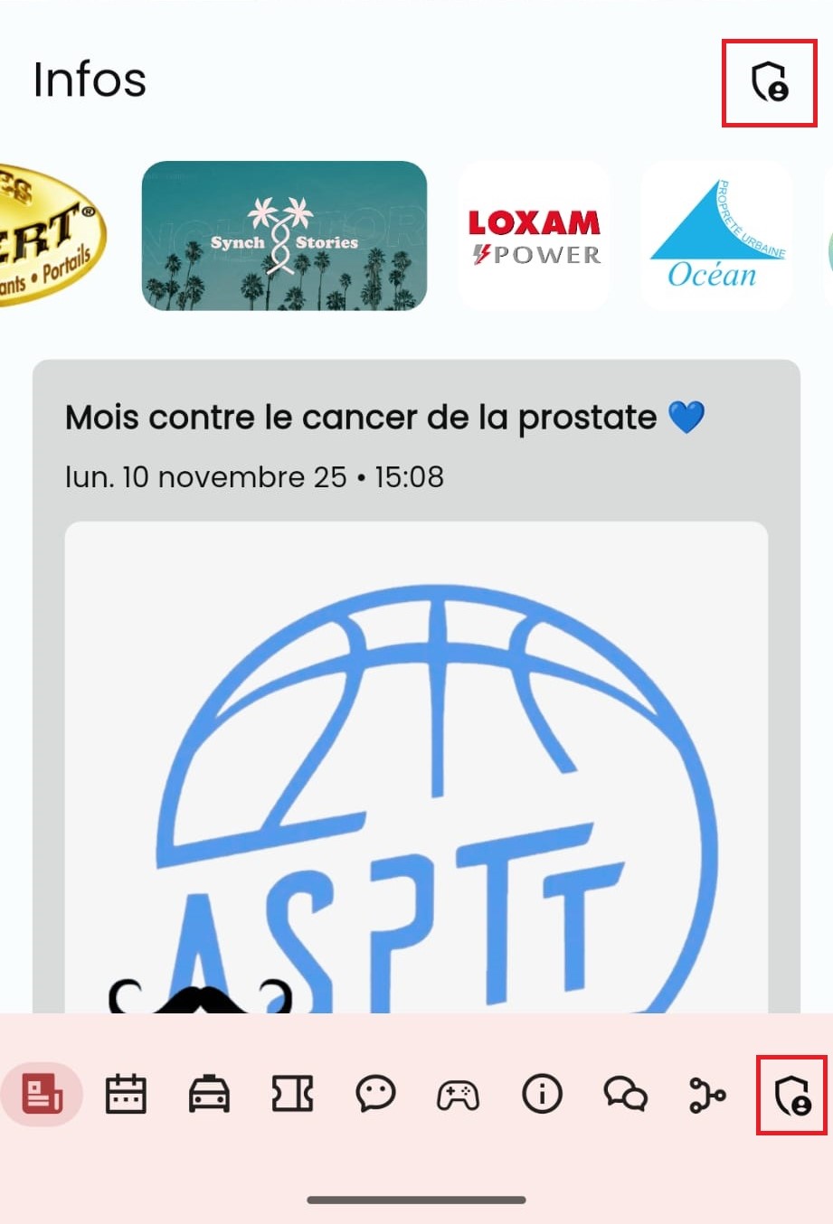 Some modules, such as News Feed and Events, can also be managed by users with specific rights for those modules—even if they are not general admins. These users can access module management via the same icon located in the top-right corner of the screen.