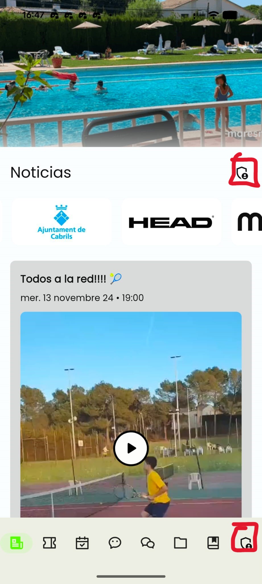 Editors can use the button in front of News (Noticias in the below Spanish example) while Admins can use either the same button as Editors or switch to the Admin mode using the last tab icon on the bottom left of the app.