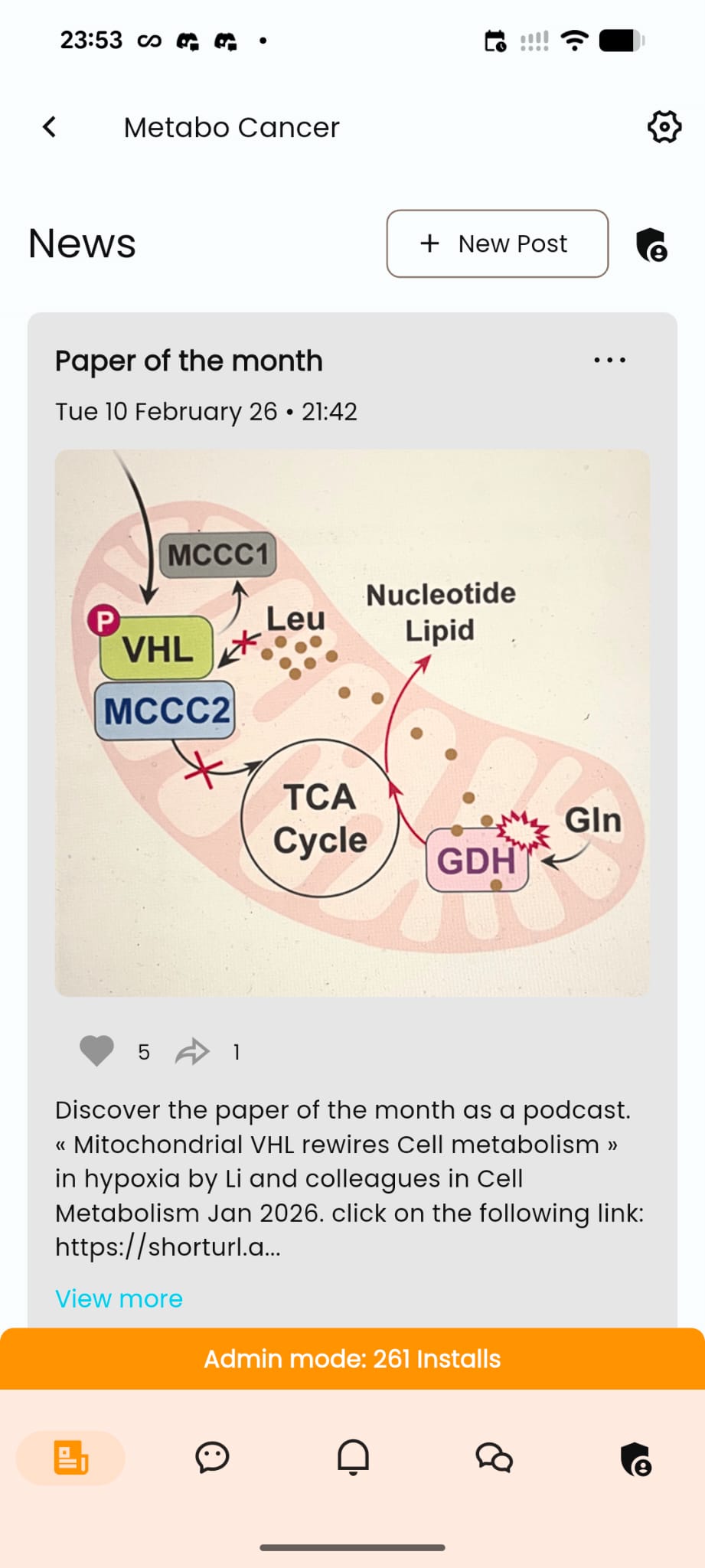 Editors can use the button in front of News (Noticias in the below Spanish example) while Admins can use either the same button as Editors or switch to the Admin mode using the last tab icon on the bottom left of the app.
