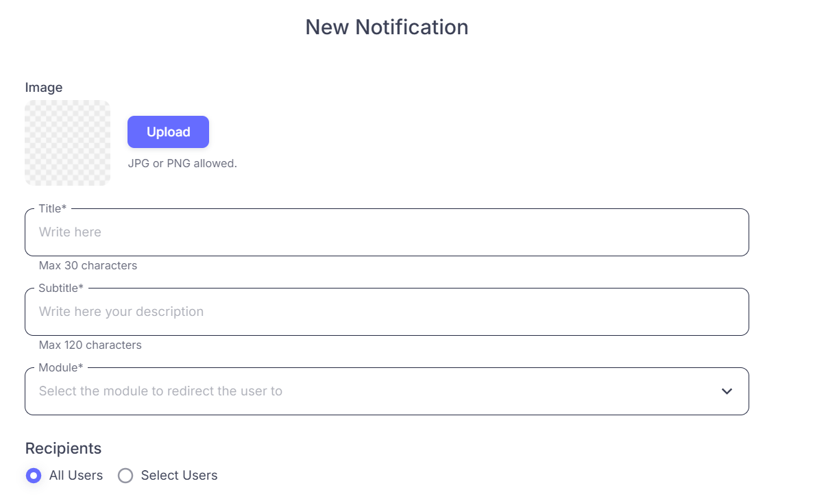 The Notification module is your direct line to your community. It lets you send push notifications—instant alerts that appear on your users’ phone screens—so important news, schedule changes, or updates are never missed.