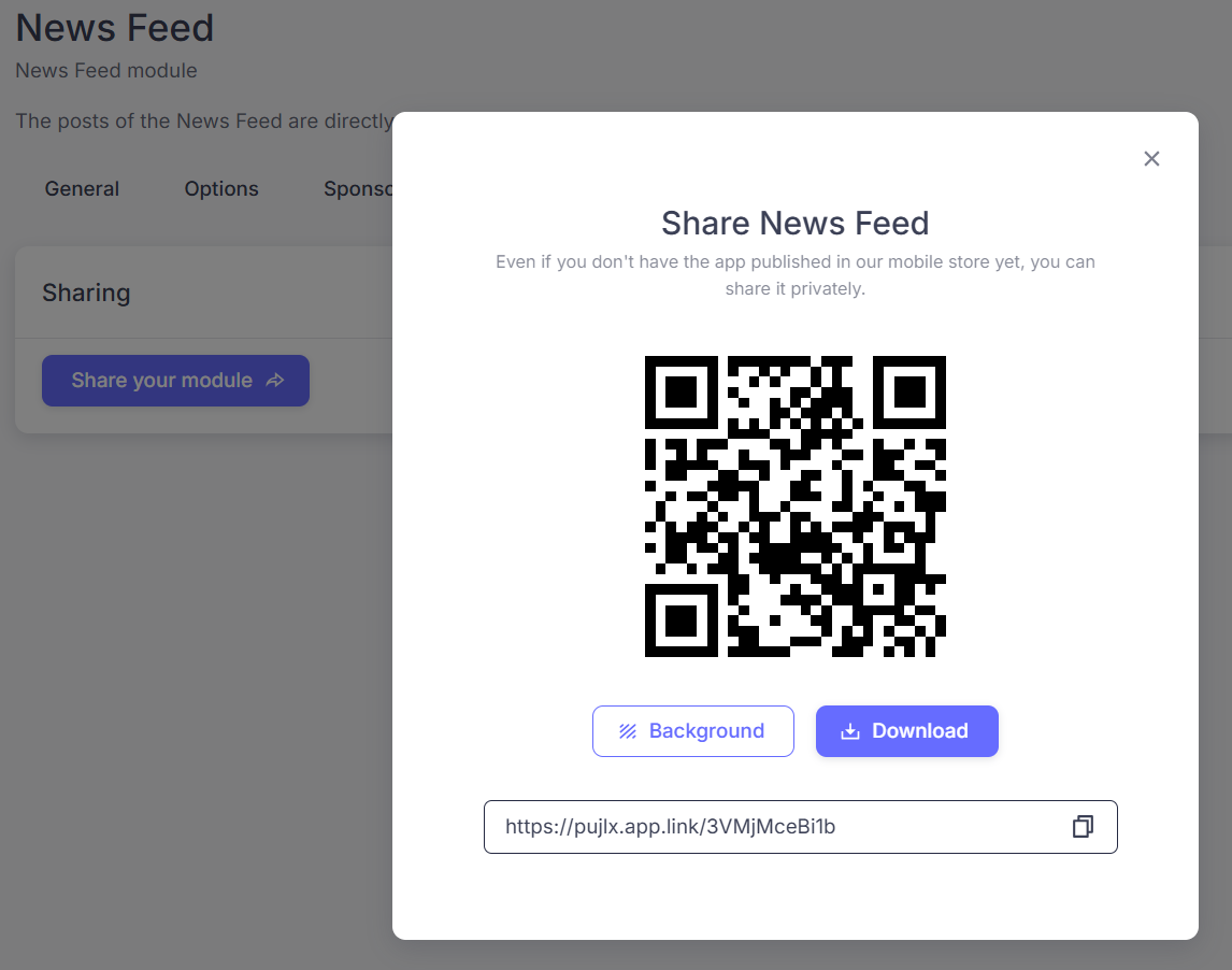 This section allows you to generate a direct link and a QR code for this module. These links open your app and take users directly to this specific module.