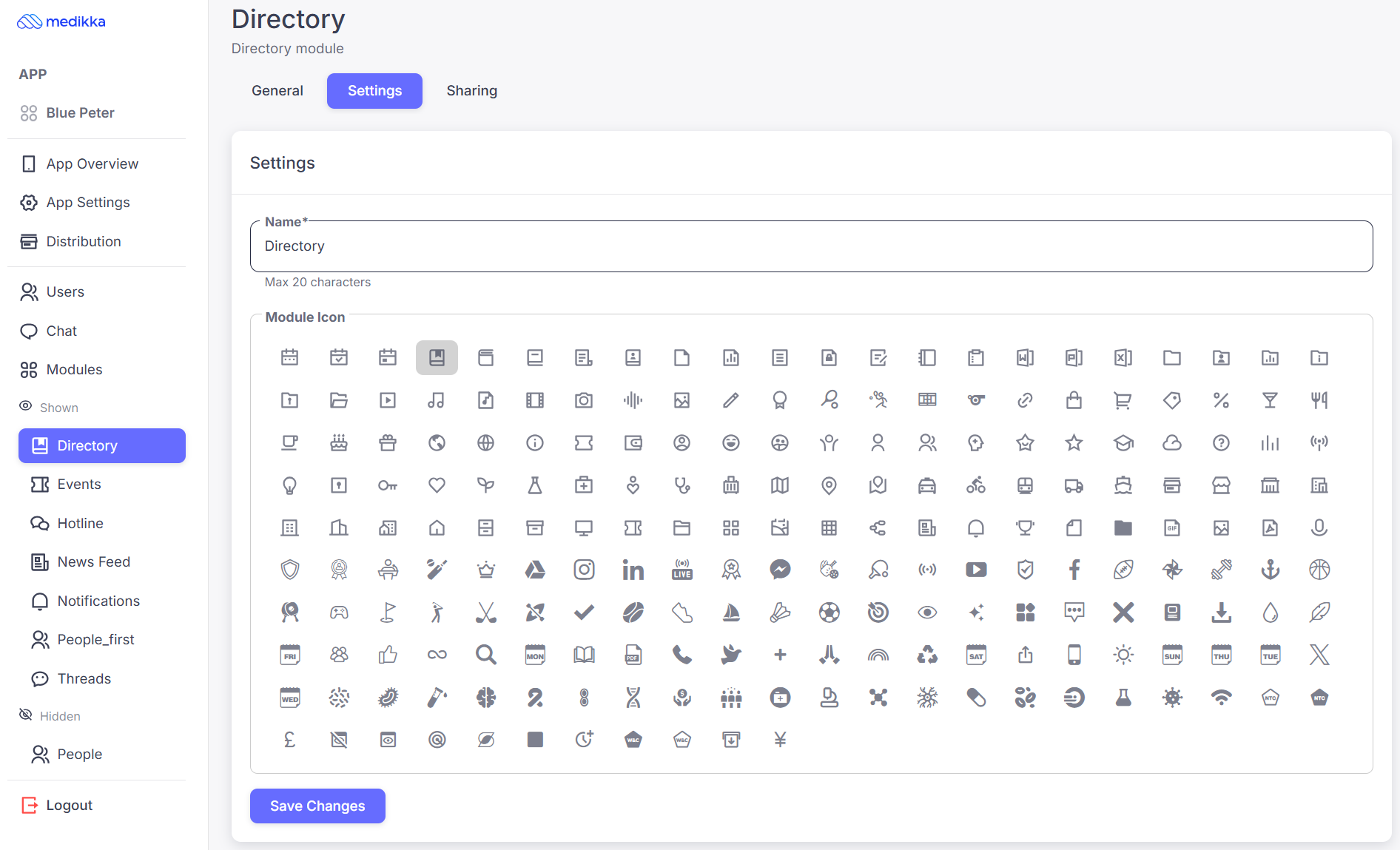 - To customize the module name (the default name is Directory), enter the new name in the “Name” field.