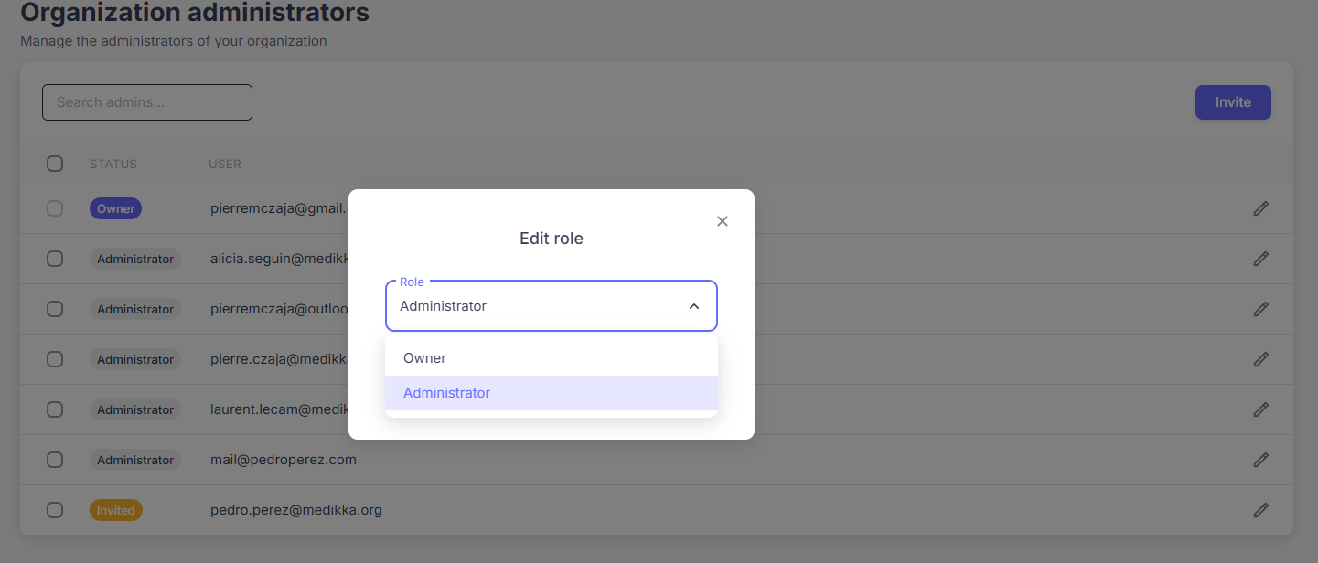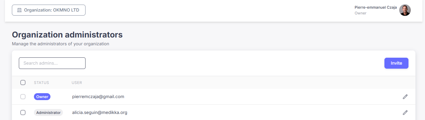 Step 4: The invited person must accept the invitation sent by email to join the organization as an administrator.