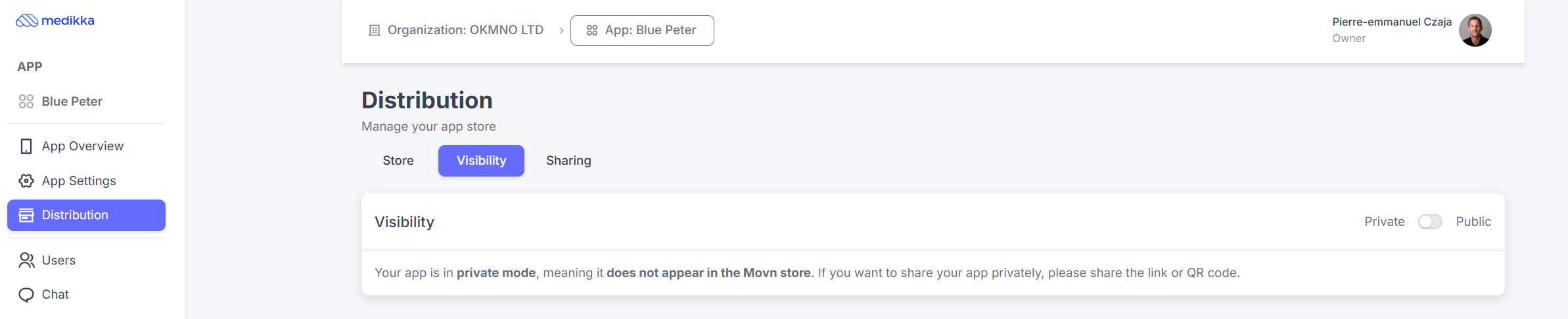 You can control whether your app appears in the Medikka App Store.