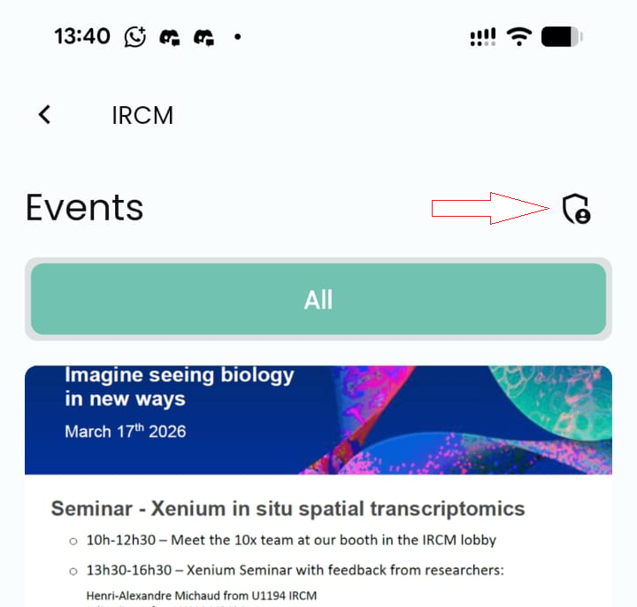- Go to the Events tab in the app