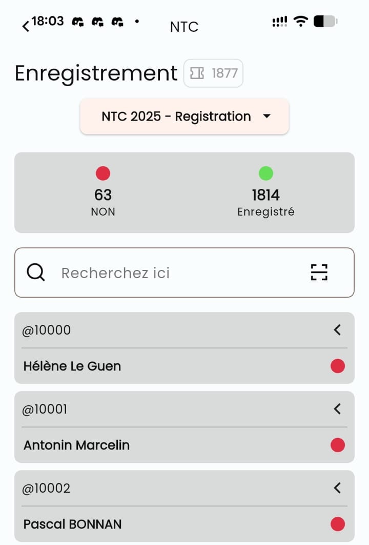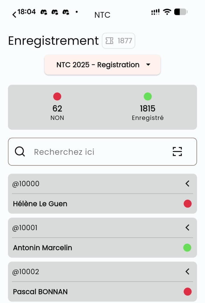 Admins and users with Verifier rights can operate access control directly from the app, making it easy to validate participants in real time during the event.