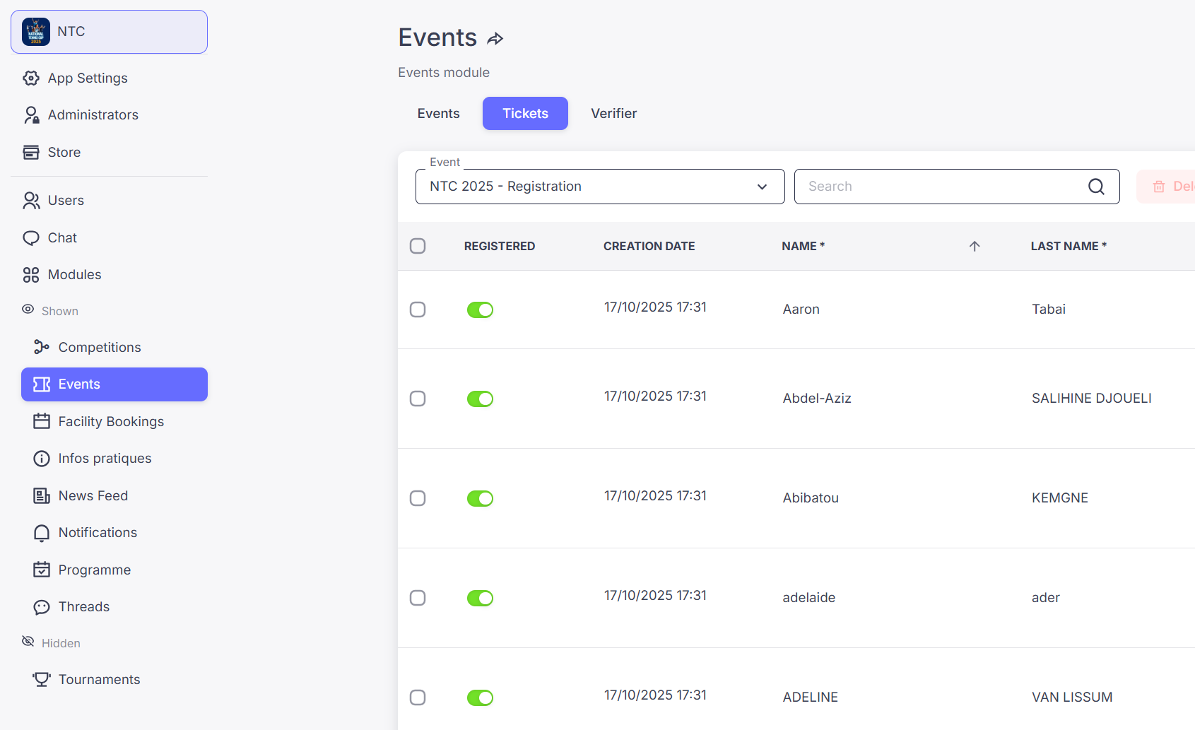 - Activate the “Registered” toggle to check in an attendee