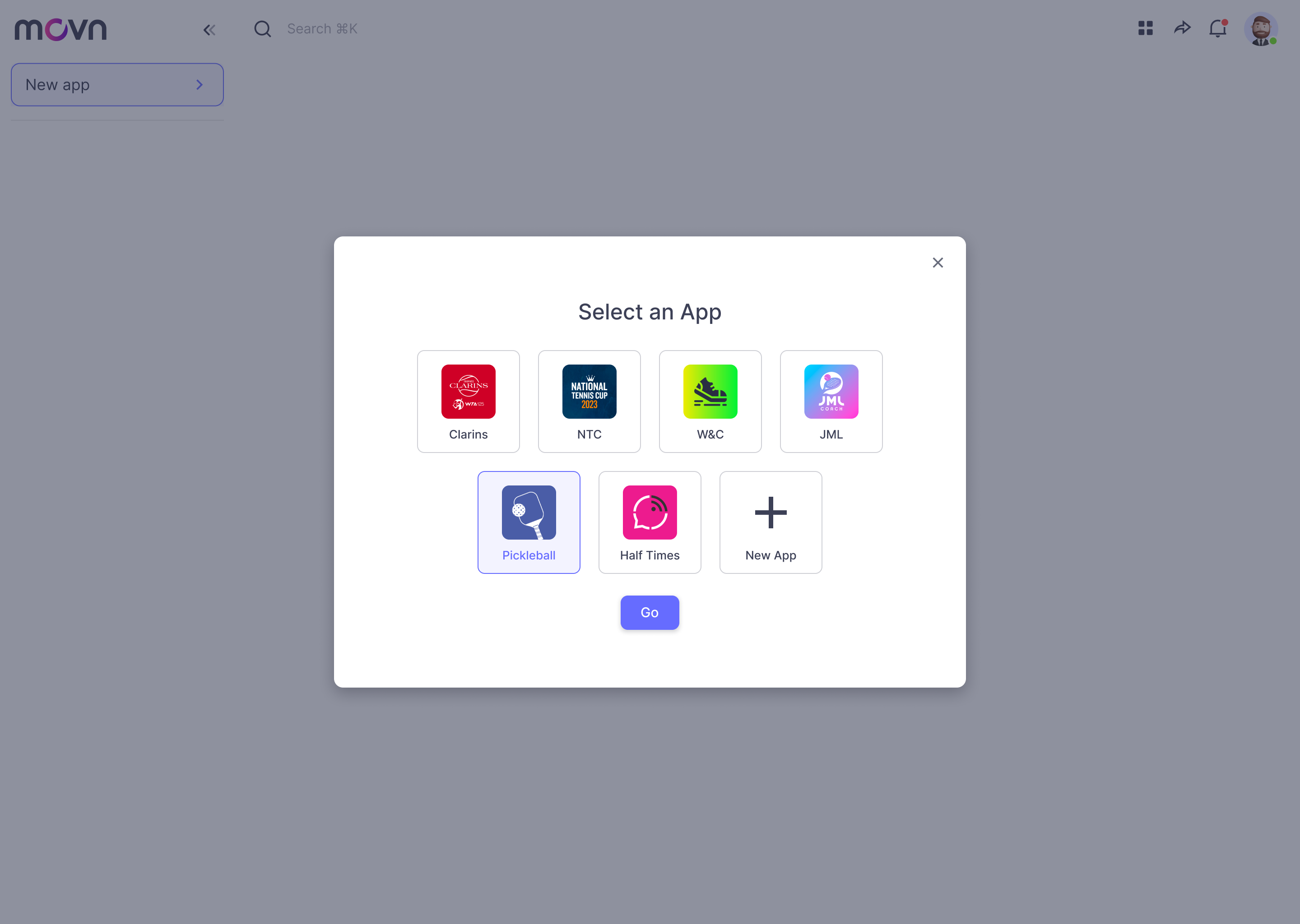 - You already have created an app and you are accesing again to the Movn Builder. You will see the following screen, you only need to click con the button New App to start the creating process.