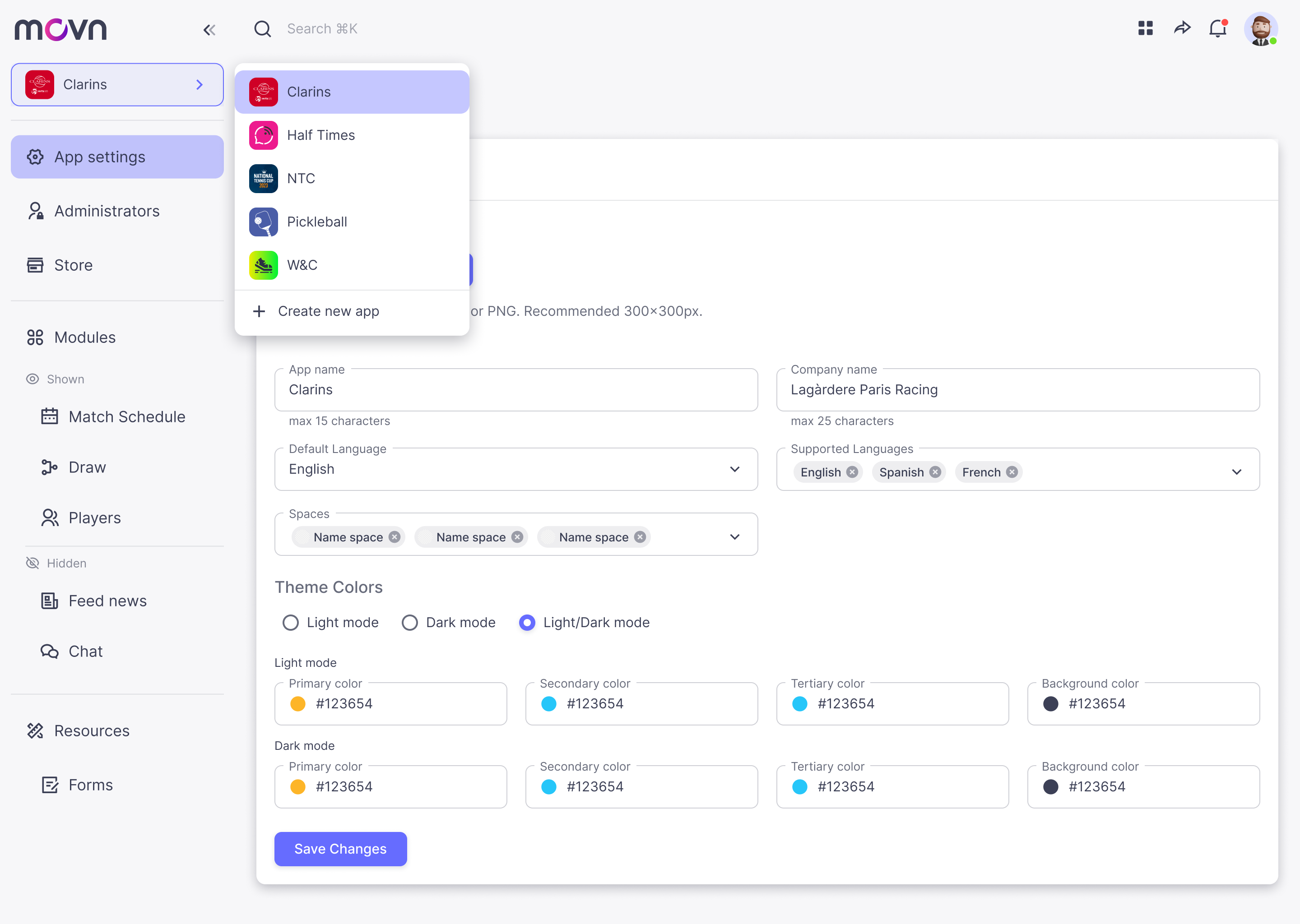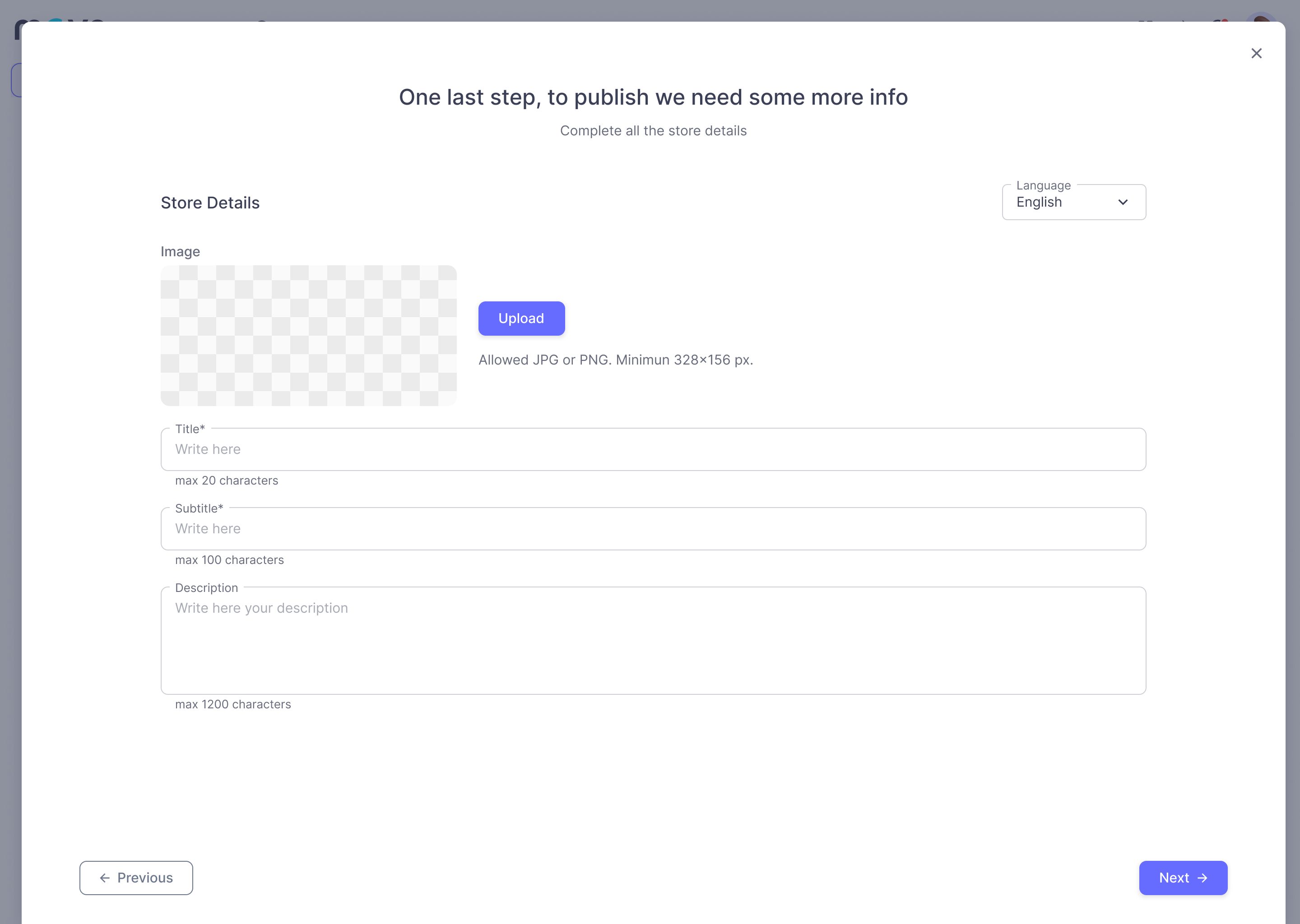 - Publish your App: you need to complete all the information that will be available in the Movn store.