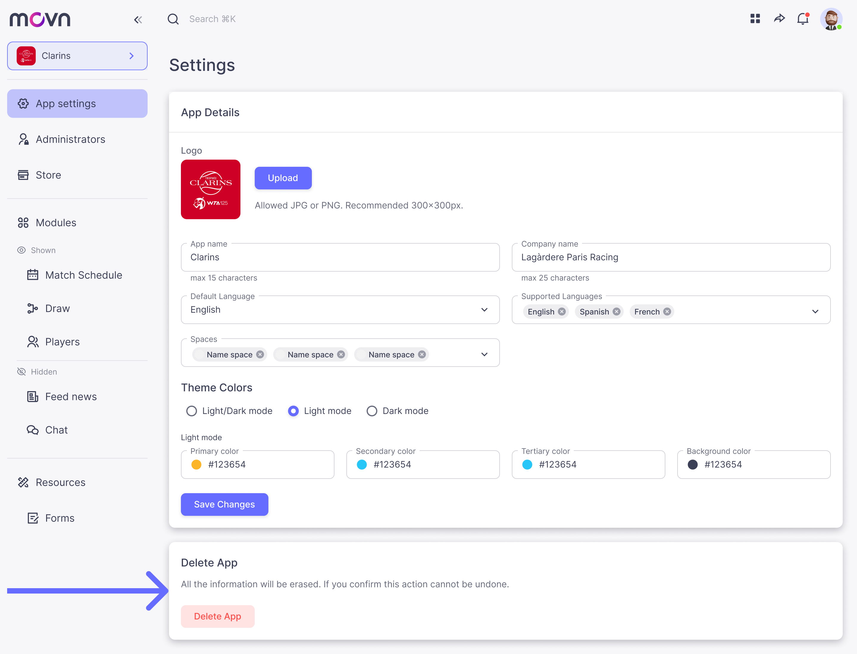 Please note that once you delete the app, all the information will be erased. If you only want to hide the app from the Movn Store, please go to the Store section to change you app from public to private.