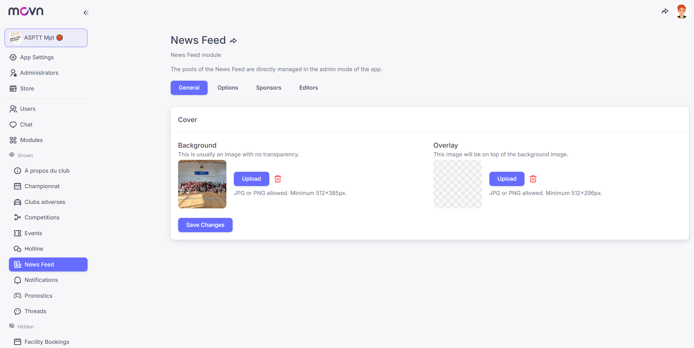 - General: manage the cover to give a beautiful look and customization to your news feed tab