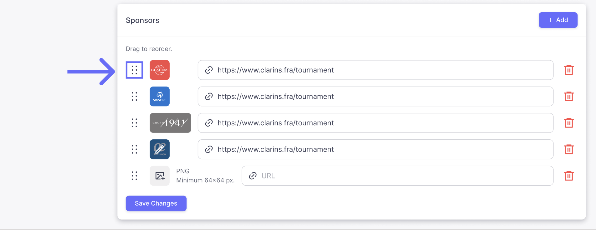 - To reorder the images click on the icon on the left of the list, then drag the line to the position you like