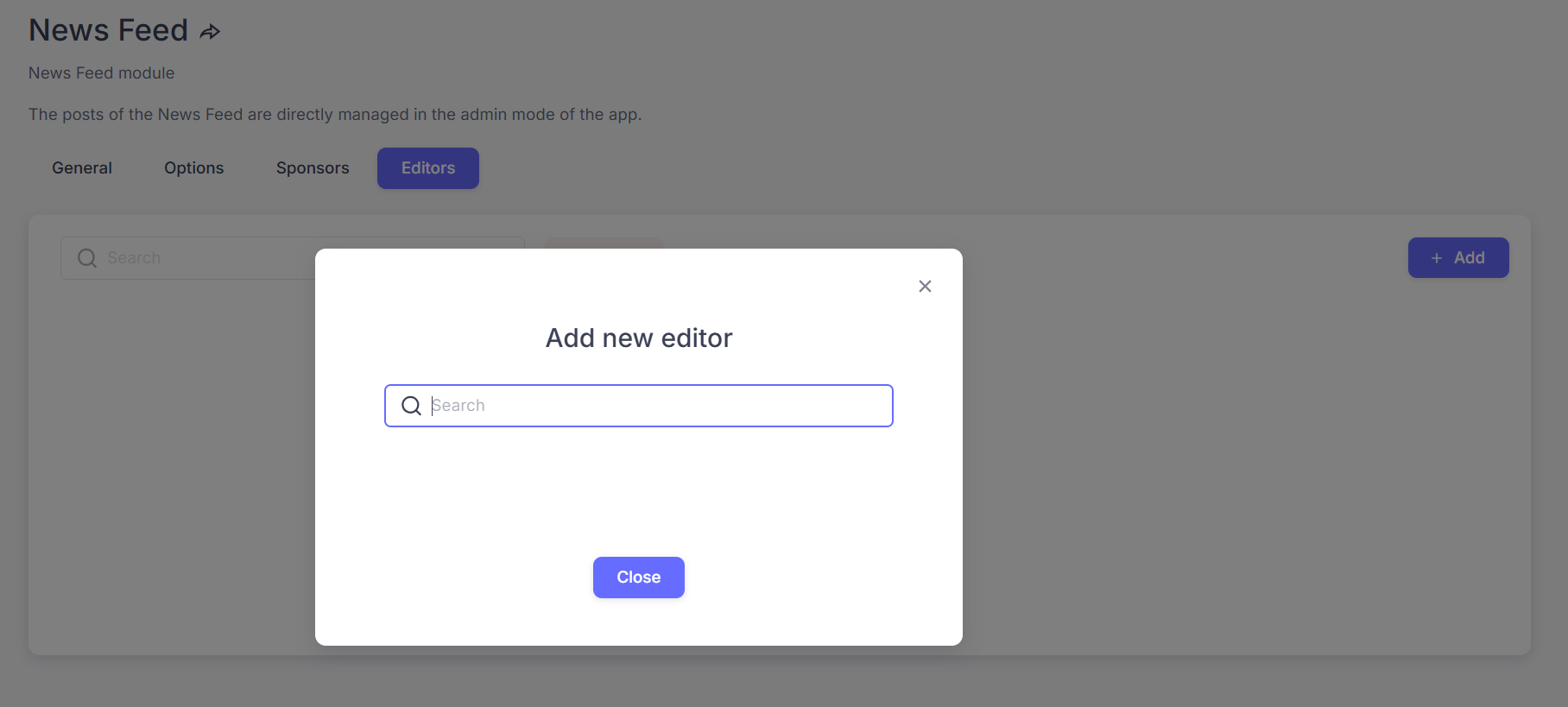 - Go to News Feed in the left menu. You will see the following screen.