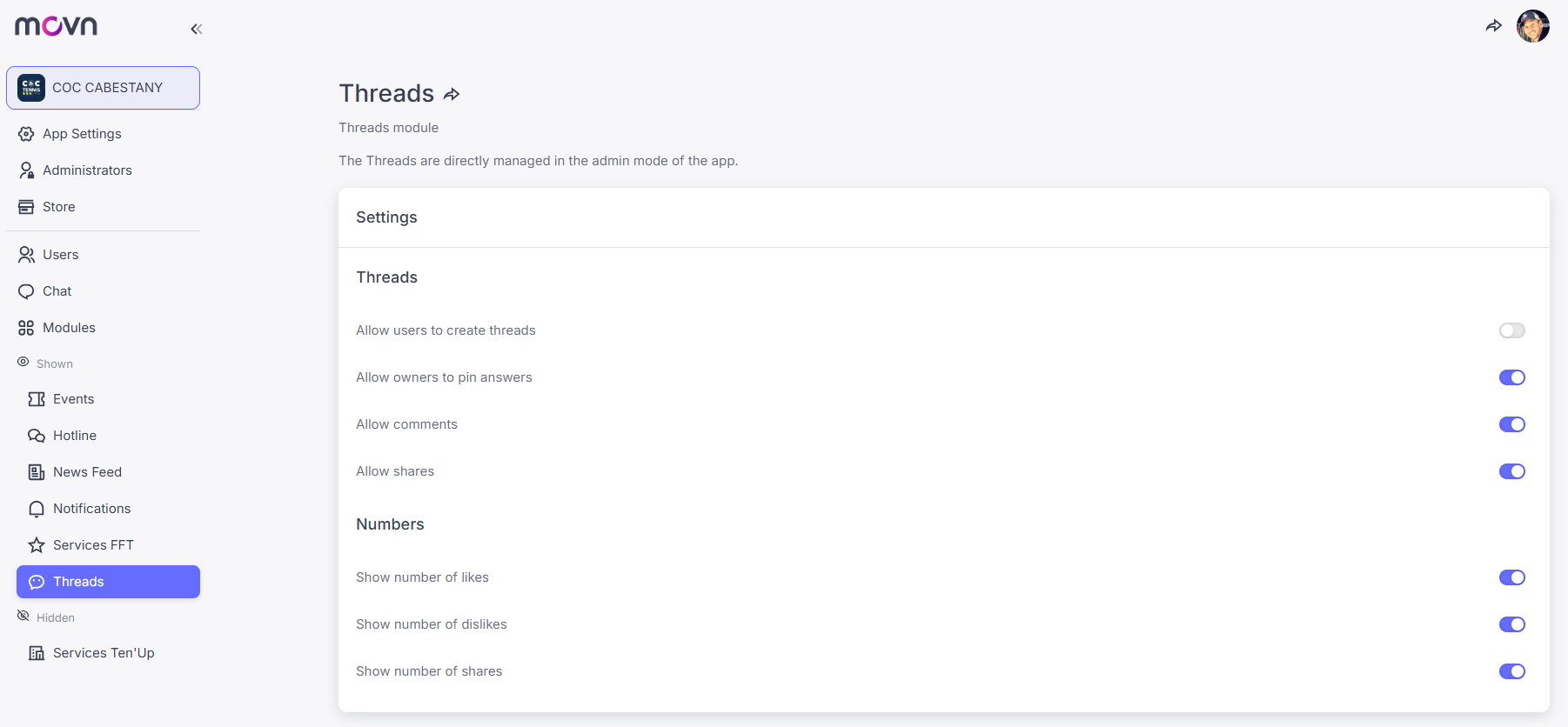 - Allow shares – members can share threads.