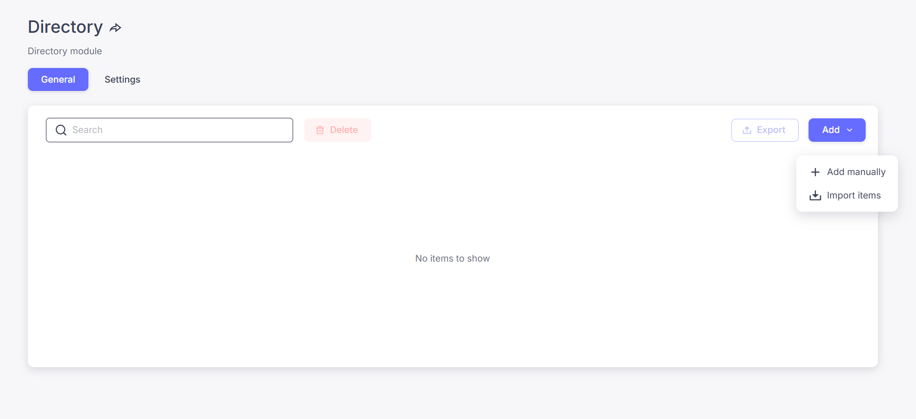 - Once your file is ready, click "Import items" again to upload your completed template and launch your directory instantly.