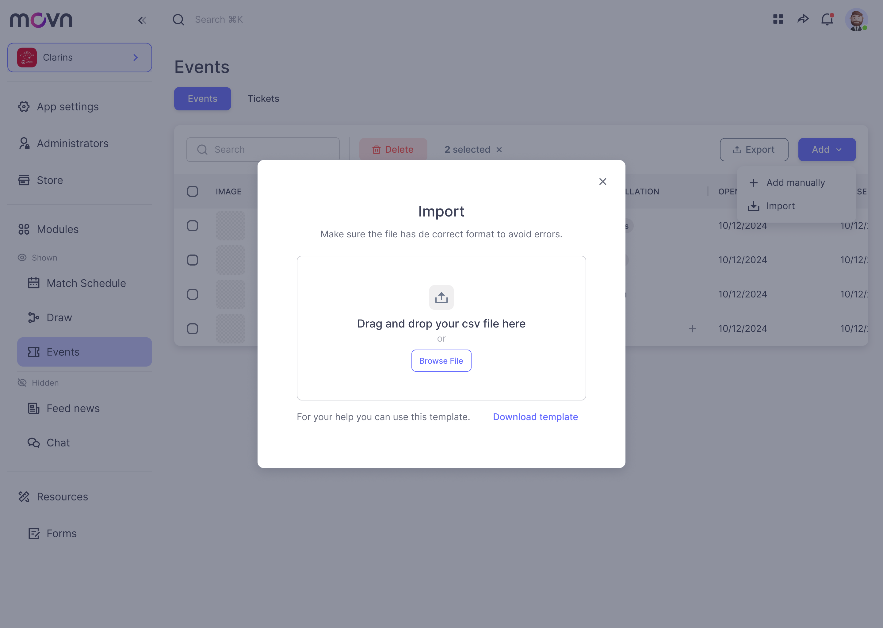 - Drag & drop a CSV file will all the data you need to import. If you have any problem with your file, download our template for your help.